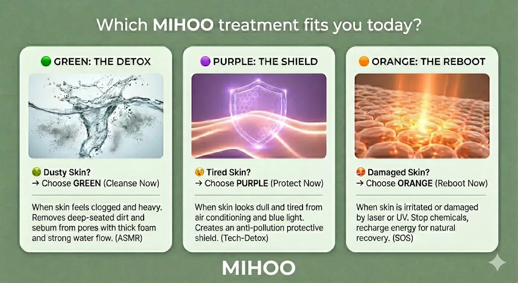 "Với làn da yếu đi do laser và hóa chất, thay vì thêm dưỡng chất, hãy bắt đầu bằng việc 'thanh lọc'. mihoo giúp loại bỏ bụi mịn và độc tố, đánh thức sức sống tự nhiên vốn có của làn da."